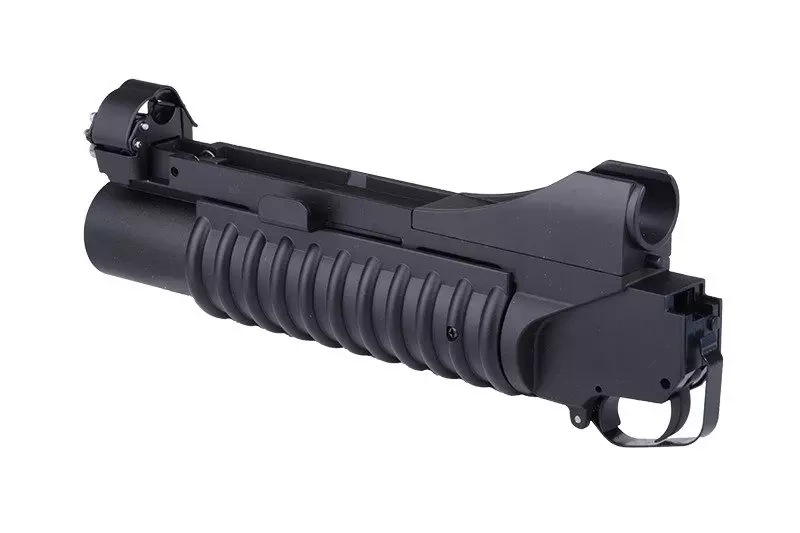 Wykonana w większości z metalu replika popularnego granatnika M203 w wersji Short. Airsoftowy odpowiednik tego granatnika jest zasilany z standardowych granatów 40mm (brak w zestawie) miotających kulki za pomocą gazu. Newralgiczne części narażone na zużycie zostały wykonane ze stali. Jedynym elementem wykonanym z tworzywa jest żebrowany chwyt granatnika.