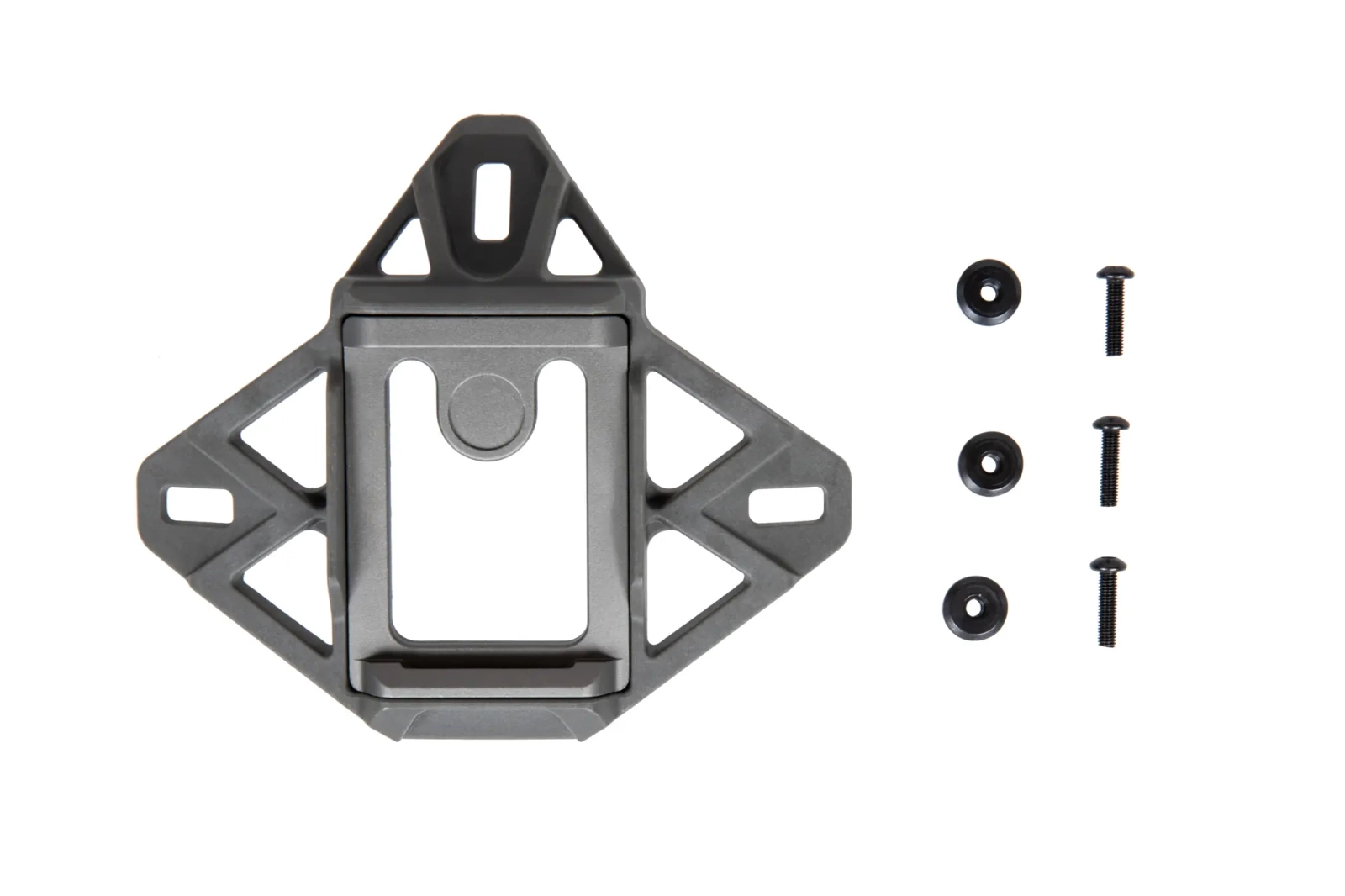 A component with which we can mount night vision devices to a helmet. It guarantees exceptional mounting stability thanks to its construction: the outer part is made of hard polymer, the inner part of aluminium. It can be screwed to the helmet shell with the three screws supplied.