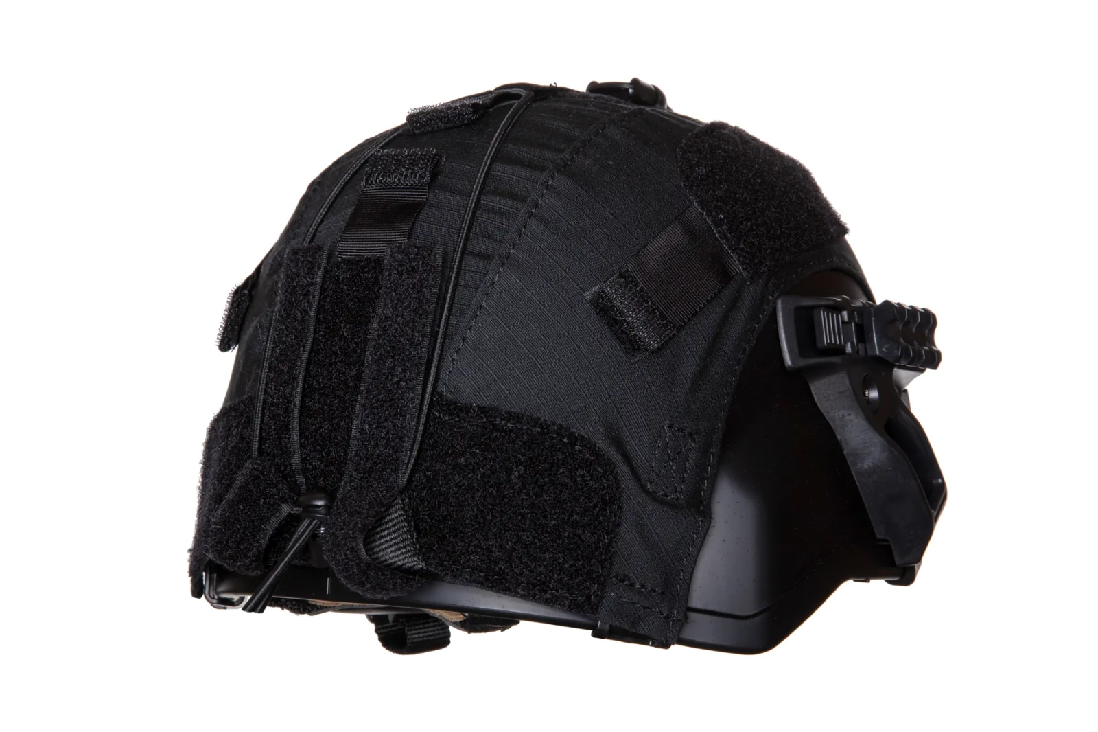 The helmet also comes with a very functional and well thought-out cover. The cover features Velcro for patches, IR tags and four IR reflectors. In addition, the helmet is equipped with a mount for a counterweight for a night vision device and a shock-cord for convenient cable routing from communication systems.