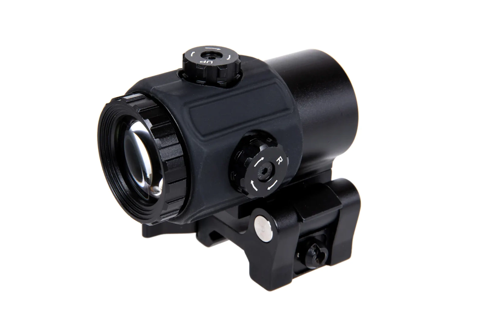 Compact, side-mounted G43 type magnification attachment. Designed for a variety of collimators and fitted with a QD-type mount for the 22mm RIS rail. The magnifier also features vertical and horizontal adjustments.