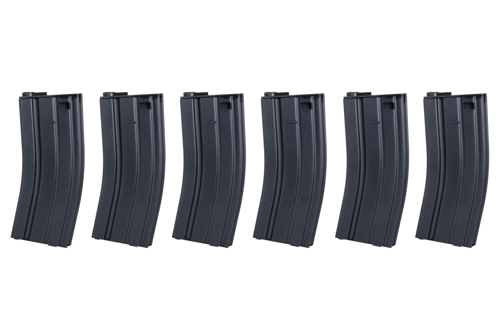 A set of six STANAG-type steel magazines with a capacity of 70 bullets.