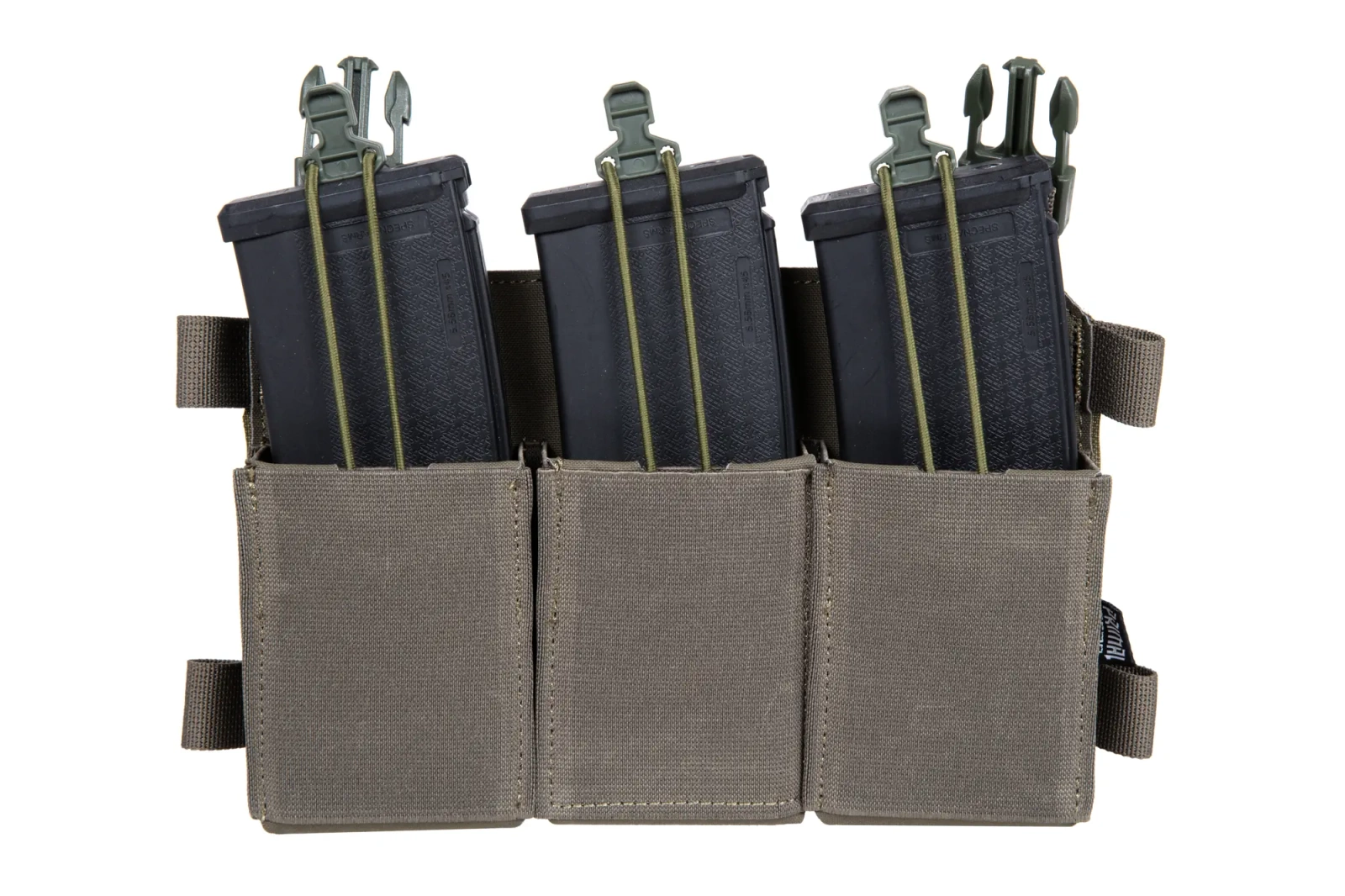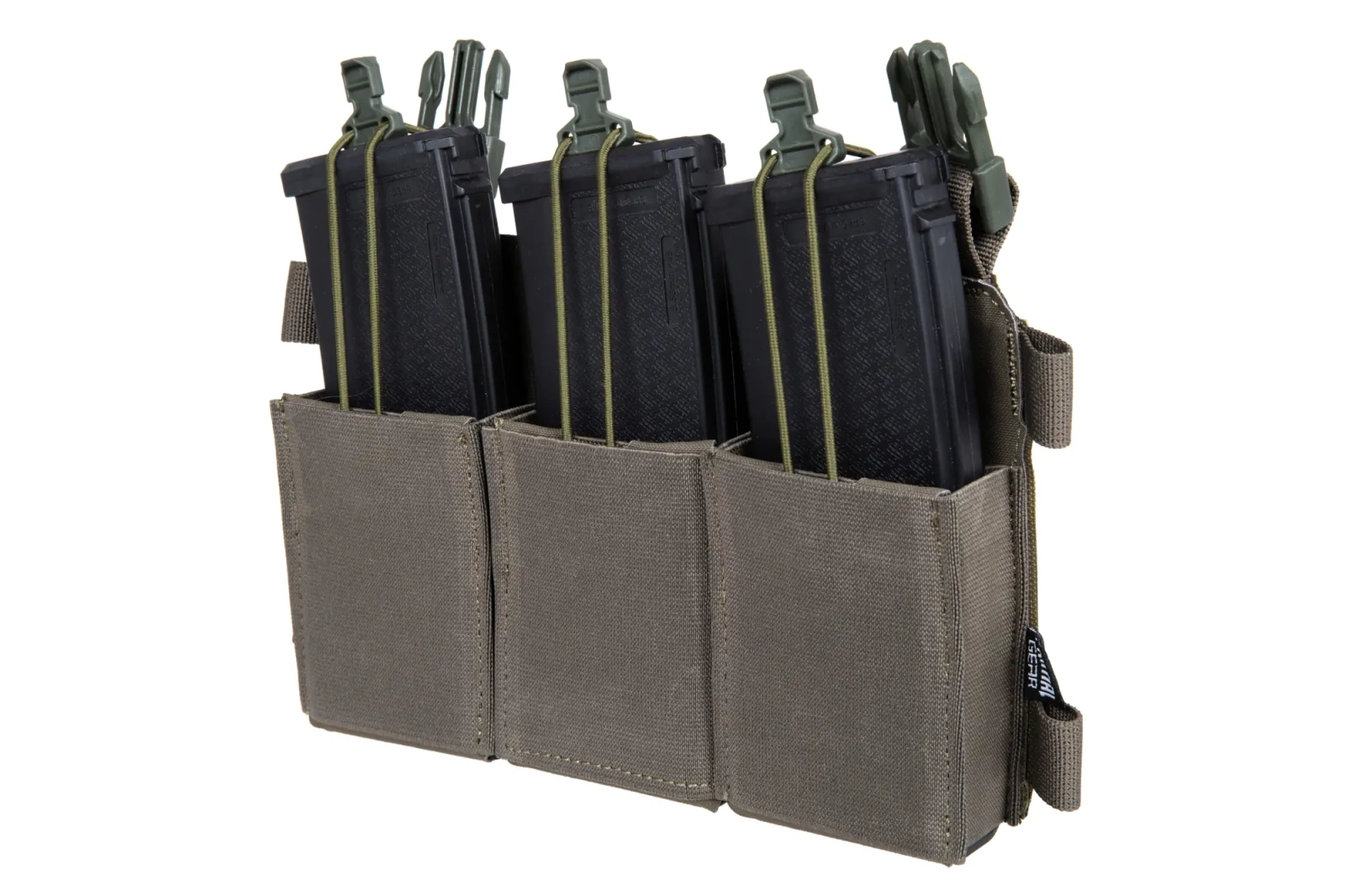 Triple loader designed for the waistcoat series Plate Carrier Primal Gear, attached to the waistcoat with buckles and webbing. In addition, the model has been equipped with clamps and fasteners allowing the model to be used as a module to replace the front flap.
