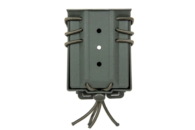 Made of durable plastic, this fast type loader holds two M4/M16, AK or other similar sized rifle magazines. The pouch is equipped with a special elastic cable to regulate the "opening" of the pouch, which better adjusts to the content and does not allow the magazines to fall out. The pouch can be mounted on a belt with a maximum width of 45mm as well as on equipment compatible with the MOLLE system.