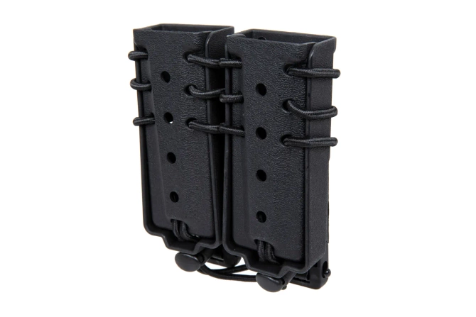Made of durable plastic, this fast type loader holds two 9mm magazines. The pouch is equipped with a special elastic cord to adjust the "opening" of the pouch which better adjusts to the content and does not allow the magazines to fall out. The pouch can be mounted on a belt with a maximum width of 45mm and on the equipment compatible with the MOLLE system.