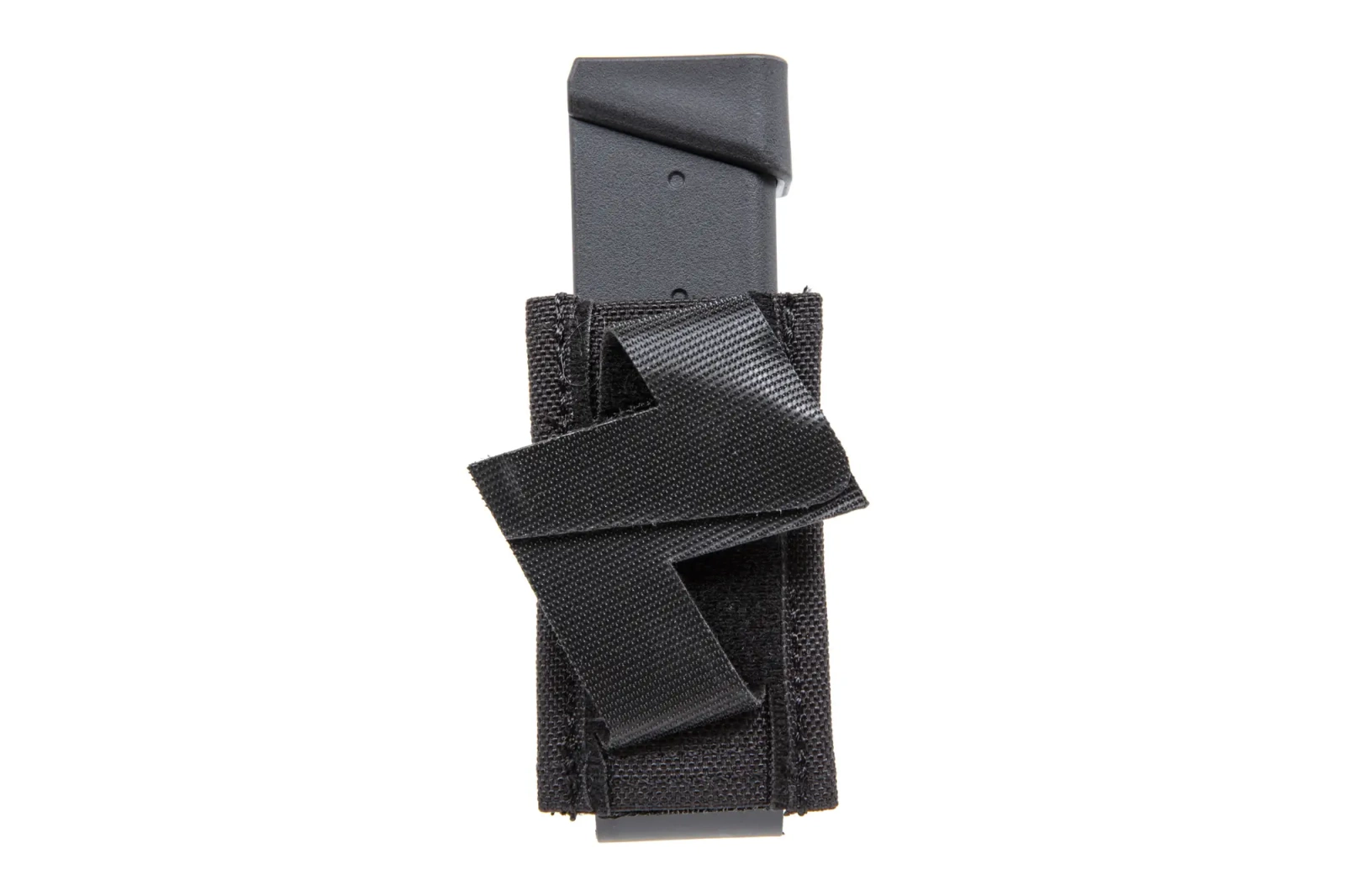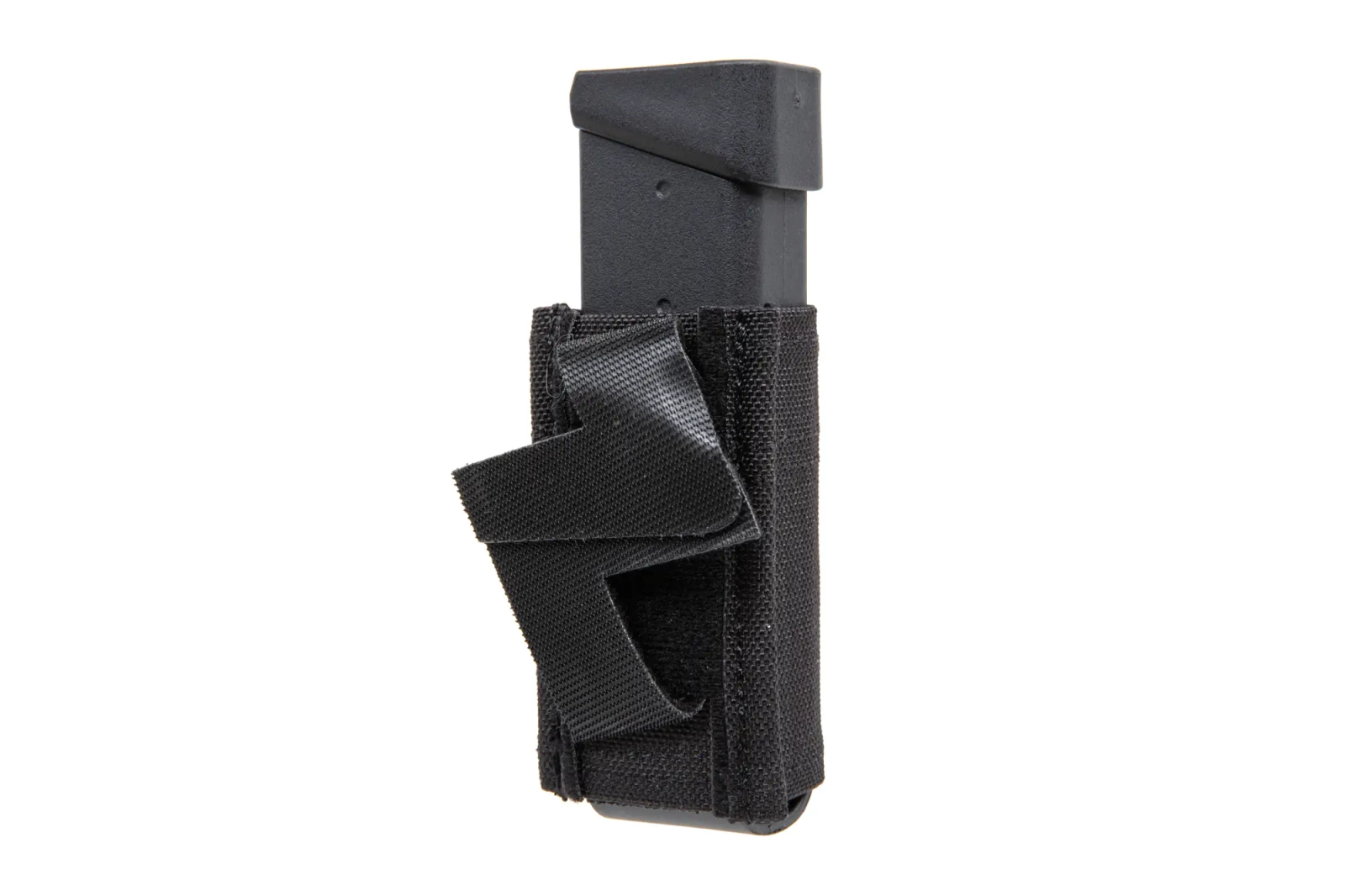 The loader, made of durable material, has been designed to carry a single pistol magazine. The loader's unusual attachment - specially designed Velcro - enables the loader to be quickly mounted at a 45-degree angle on virtually any tactical belt.