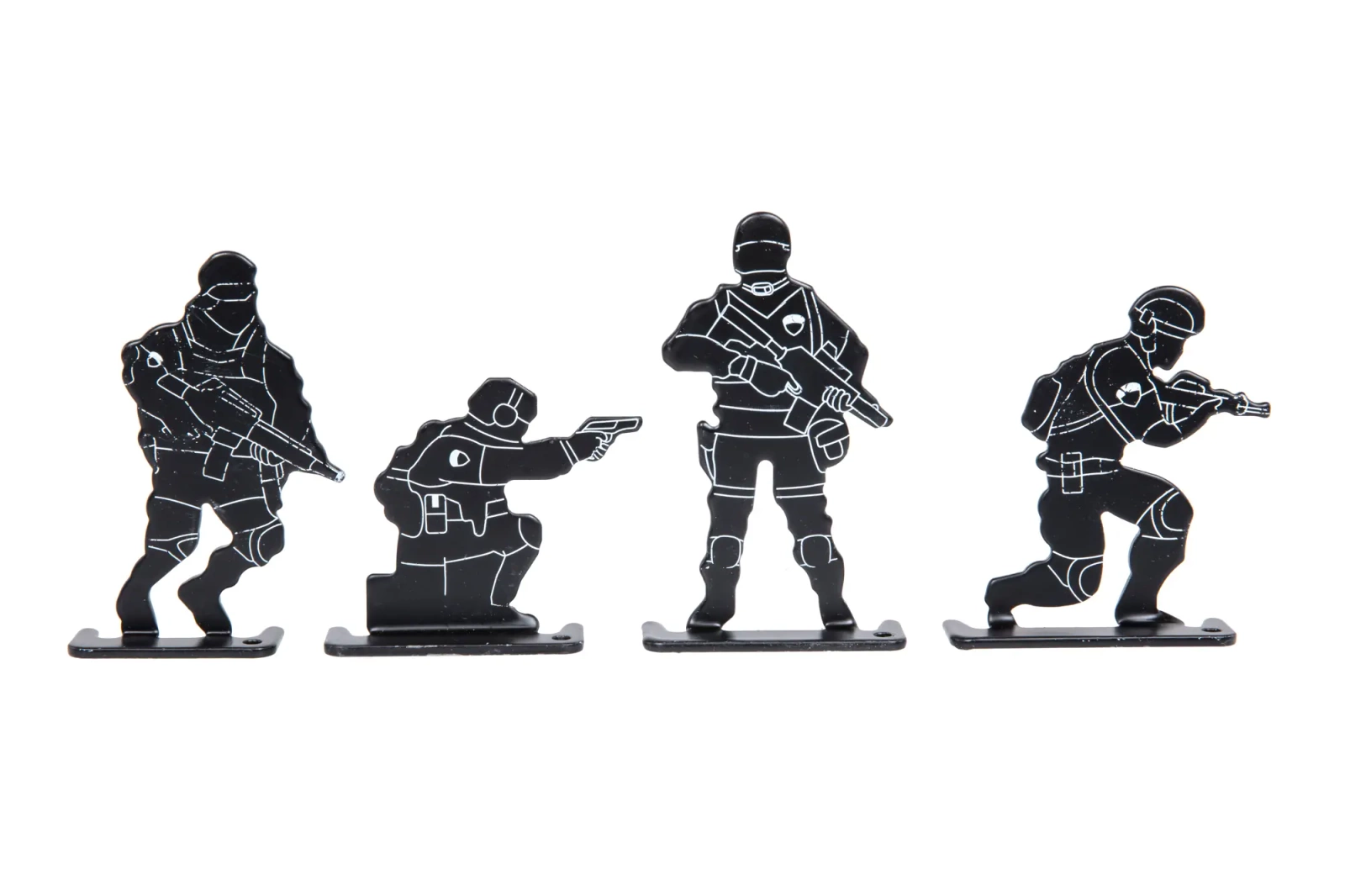 The set consists of four targets of different sizes. Each figure comes with a stand that will allow easy mounting on a flat surface.