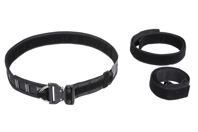 Three-piece tactical belt equipped with 20 slots in the Molle system. It fastens with a Cobra-type buckle for quick removal.