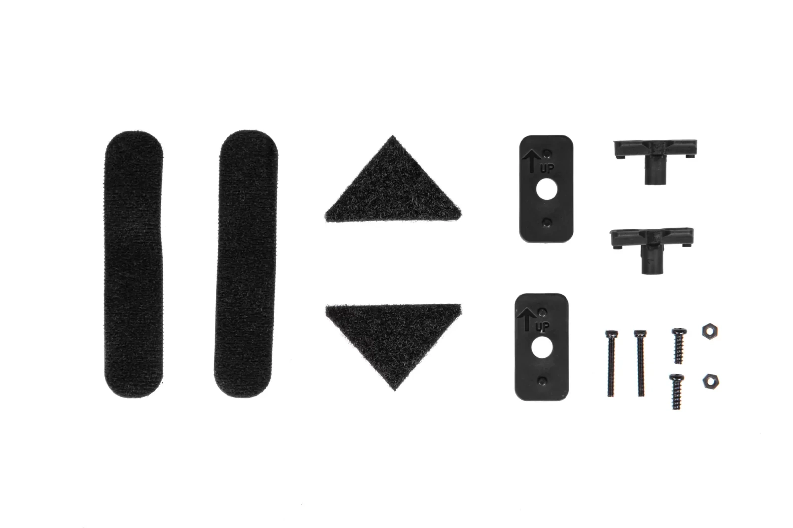 The headset comes with comfortable, large rubber buttons for comfort when changing the ambient sound amplification and a mounting kit that will allow the headphones to be attached to an ARC-type rail.transport pouch andVelcro fasteners are included in the box to help organise cables.