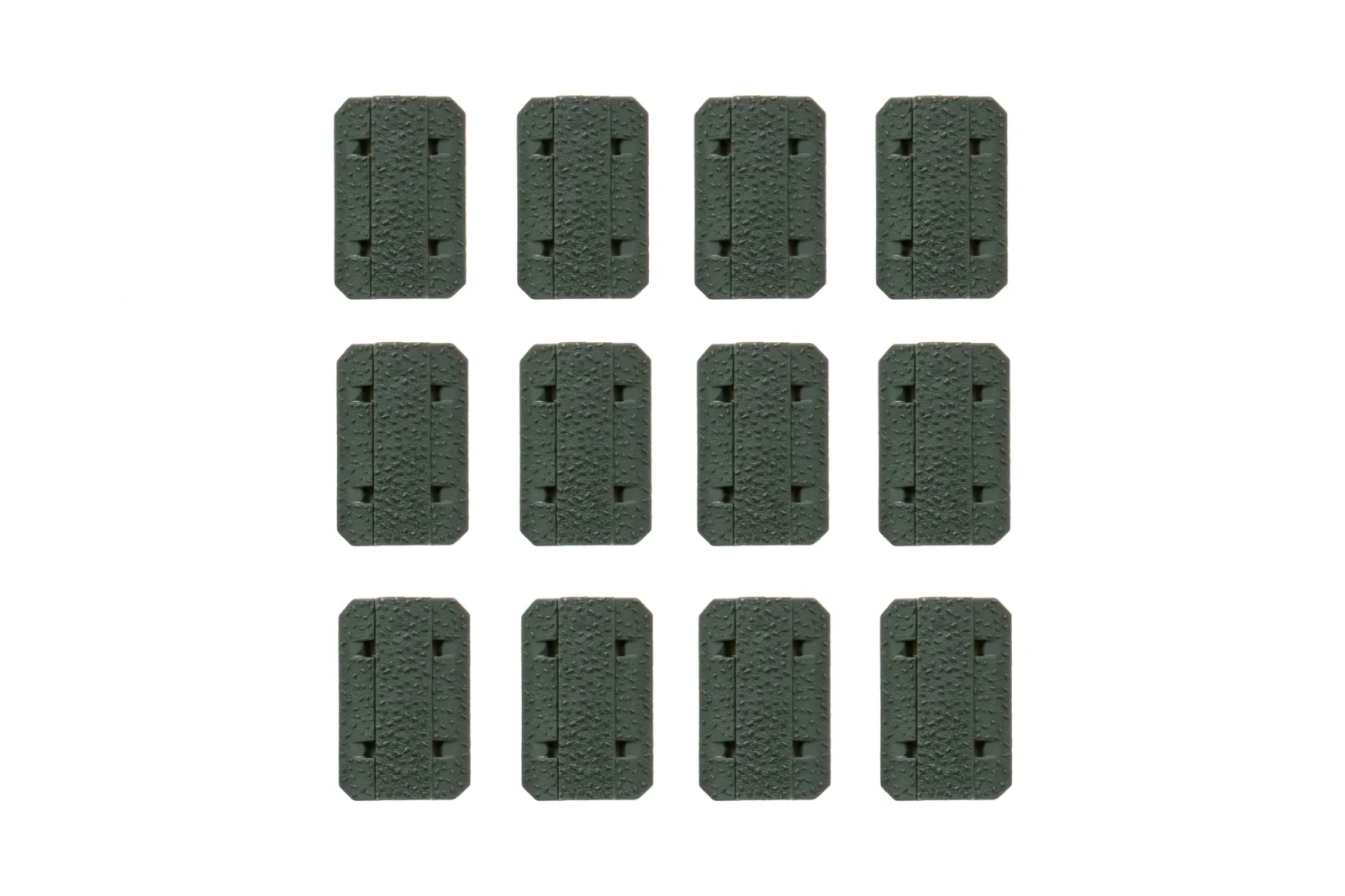 A set of 12 covers made from polymer plastic, dedicated to mounting on M-LOK rails.