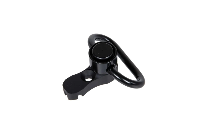 Aluminium mount including steel QD suspension eye. Designed for mounting on fronts in the KeyMod or M-LOK system. In addition, the mounting has an additional notch to manage the wiring of gel buttons for tactical lighting or laser indicators.