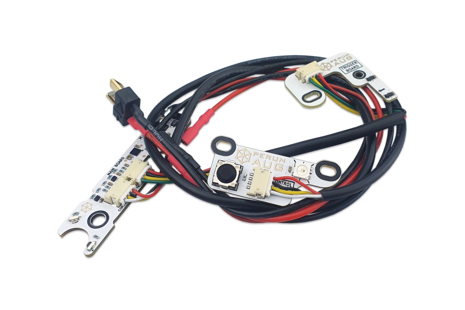 Perun to AUG replaces mechanical contacts in the replica and provides many new features and conveniences. The magnetic sensors work with a magnet attached directly to the trigger, allowing the linkage connecting the trigger to the gearbox to be removed. The result is a much lighter trigger action. Optical detection of the position of the piston pinion gear ensures reliable single-fire operation.