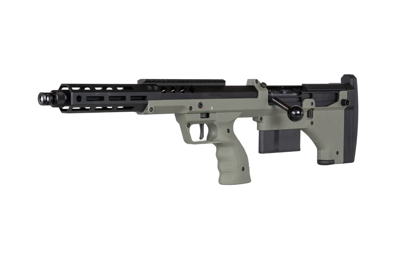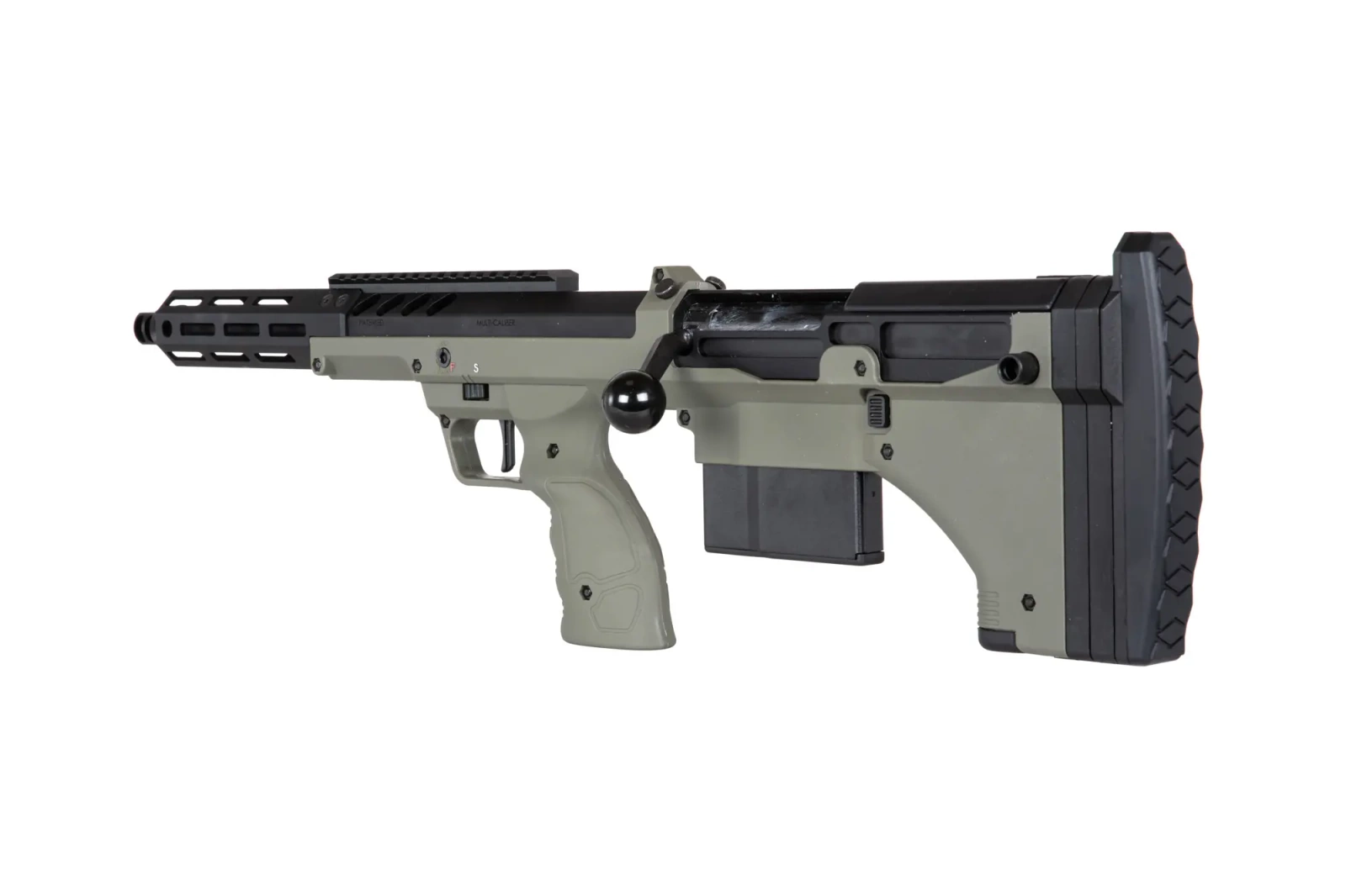 SRS-A2/M2 is a new series of superb spring-driven replicas manufactured by Silverback, produced under licence from the American company Desert Tech®.The SRS (Scout Recon Stealth) are compact sniper rifles in bullpup configuration, where the body including the pistol grip is made of polymer plastic. Other components such as the breech chamber, outer barrel, bed and discharge device are made of aluminium, while the magazine, reloading handle and magazine catch are made of steel. The A2 series is a revised version with even better workmanship, ergonomics and even better stock performance.