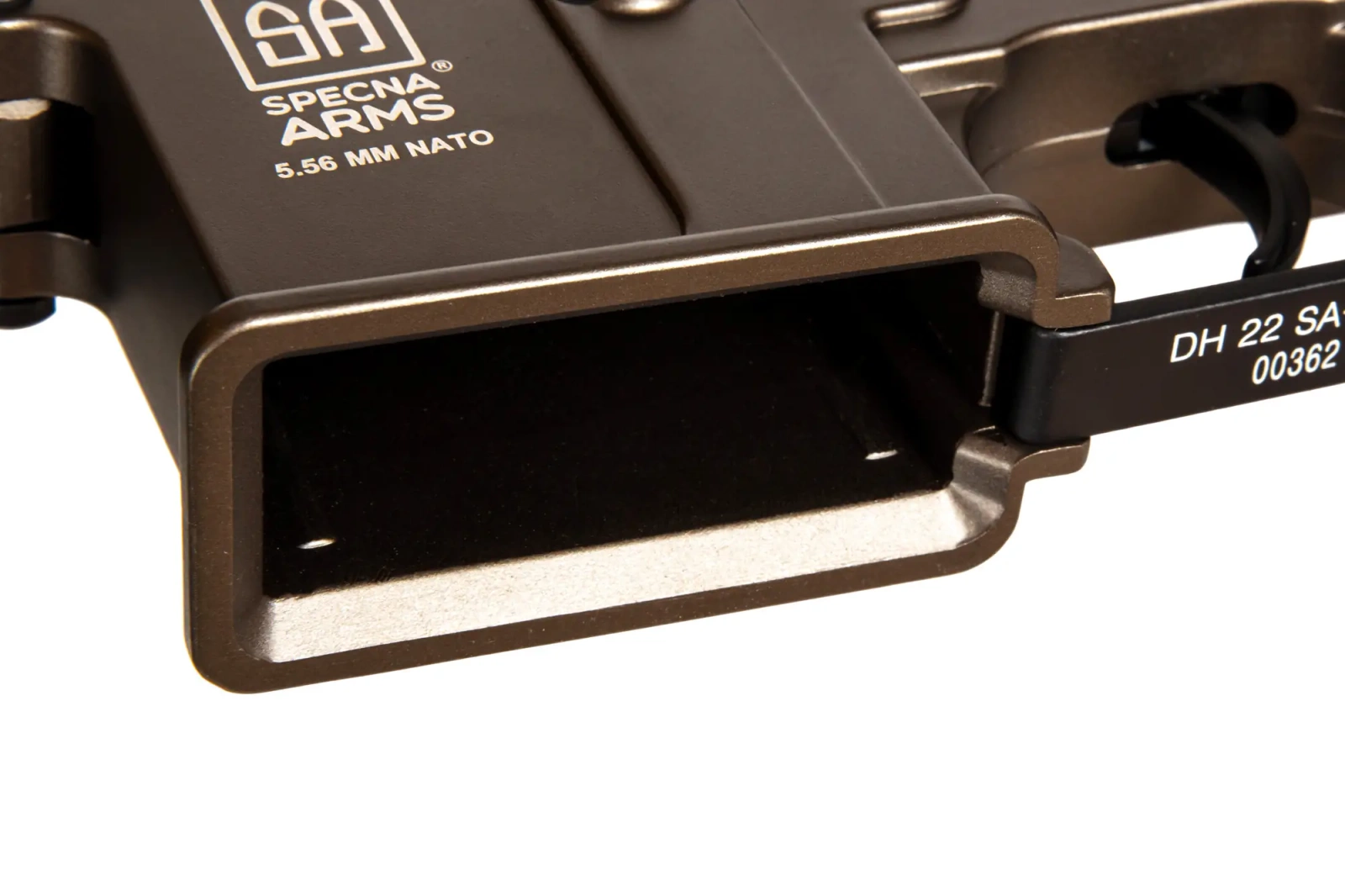 The SA-H11 carbine replica from manufacturer Specna Arms is a well-fitted and very well-balanced airsoft replica. It is made of a uniform zinc and aluminium alloy, and the most critical places are steel, namely the suspension mount, screws and pins.