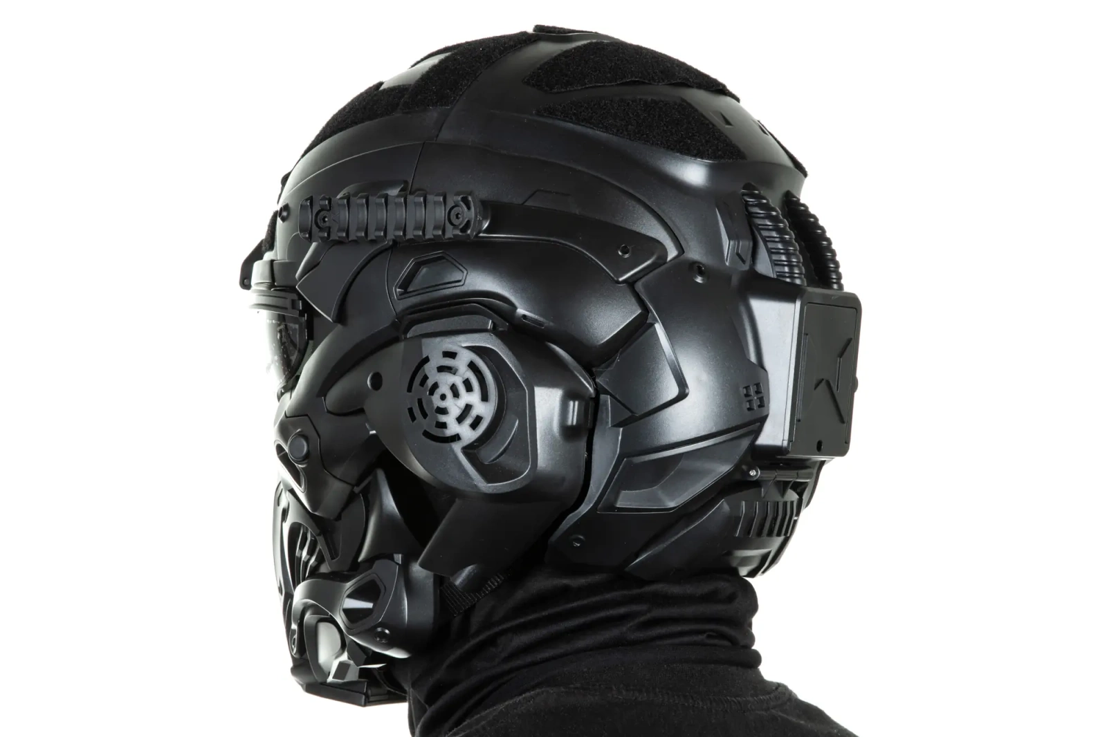 The W Ronin Assault Helmet is a deep modification of the FAST type helmet, from which the comfortable facepiece and carrying system and night vision mount have been removed. The modification consisted of the fitting of additional protective modules, visor, ventilation system preventing fogging of the visor and communication system. In addition, the helmet is equipped with RIS accessory rails on the sides.