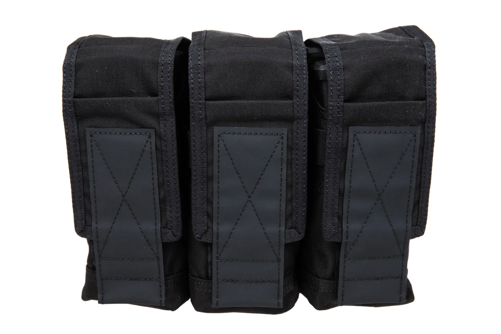 The 7.62mm triple magazine loader has been sewn from a superior material Cordura 500d, which is both durable and lightweight.6 magazines, there is a drainage hole at the bottom of each pocket.
