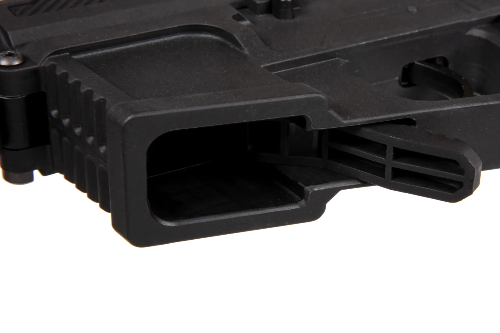 The barrel has been very well fitted the user will not experience any play between the lower and upper parts of the barrel. The use of a body and front made of lightweight polymer allowed for a reduction in weight, making it ideal as a replica for dynamic CQB games. Furthermore, the nylon fibre reinforcement makes the construction more durable than other polymer constructions.