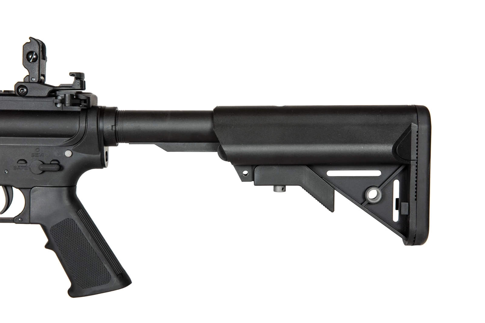 The carbine has a factory-installed MOSFET X-ASR Polish brand GATE. This is an unprecedented collaboration between a Polish manufacturer and a well-known airsoft gun factory. The highest quality MOSFET X-ASR will take care of the safety of the replica's components, improve trigger response and the life of the electronics and battery, and allow you to diagnose basic malfunctions inside the replica thanks to the built-in indicator LEDs.