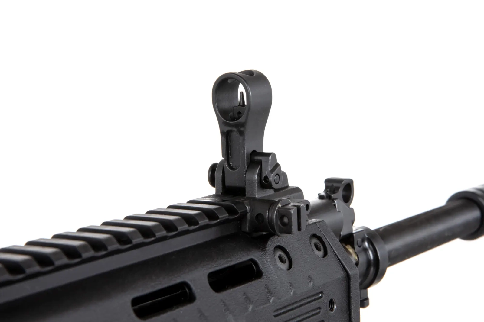 The model has been made mainly from oxidised steel, high-quality polymer and aluminium, exactly as in the original. Steel was used for the barrel and its components, all the manipulators, the trigger and slide assembly, the pins and the sighting instruments. Plastic is used for the pistol grip, buttstock, handguard and magazine with variable capacity of 30/ 120 rounds. To change the capacity of the magazine, pull the cartridge out of the shell and, with the help of the slide, change the capacity to one that suits you.