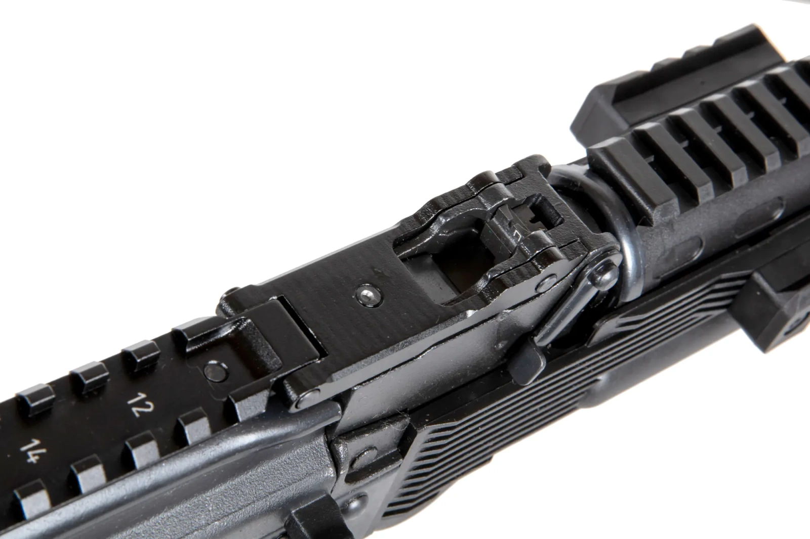 - Set of RIS rails on the handguard and gas cap allowing the installation of additional grips, torches, etc.