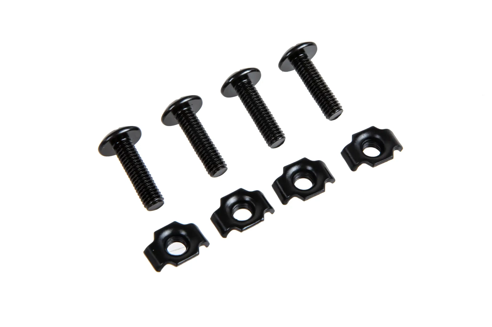 Set includes 4 steel bolts and mounting nuts for FMA helmets.