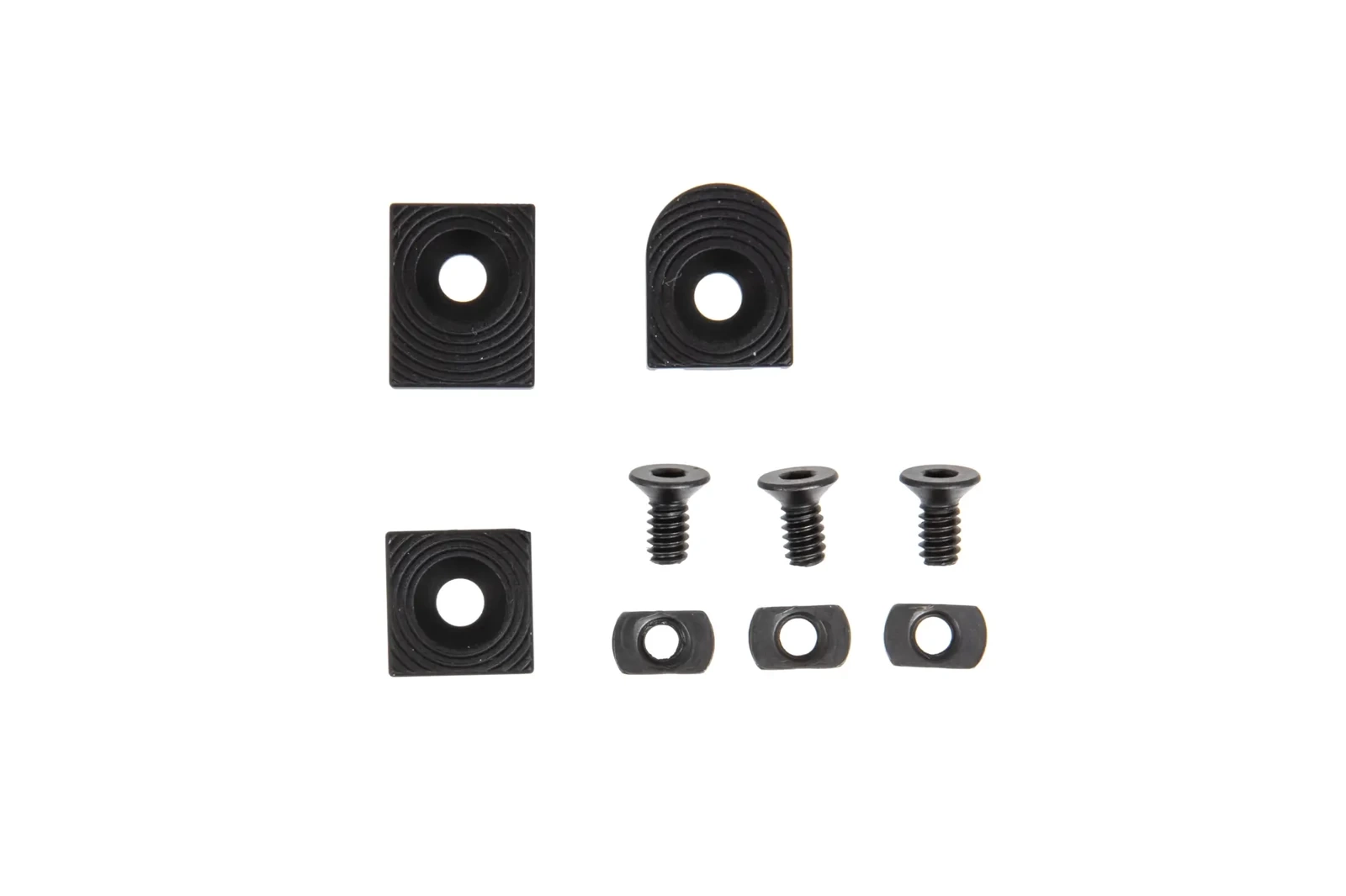 The kit, compatible with M-LOK, consists of three clamps and screws and nuts.