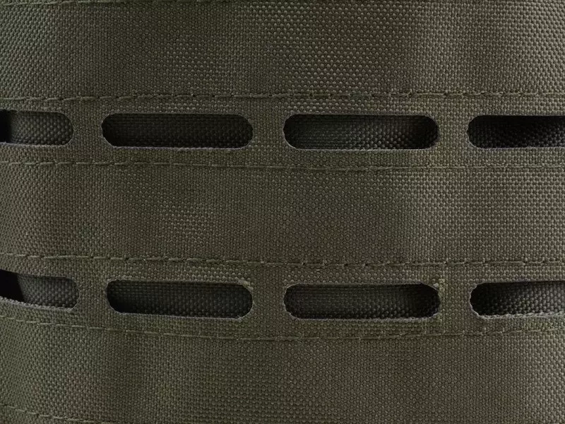 What is the laser cut technology? Instead of traditional MOLLE belts sewed onto the exterior of the backpack, dedicated holes have been cut out using a laser, so that MOLLE belts of pouches can be looped through those holes. The back and straps have been sewn with a distance mesh, which increases load-bearing comfort. The straps are regulated and the entire load-bearing system is complemented with a detachable waist belt. Belts on the sides and the bottom of the backpack fulfil the role of compression belts but also can serve as mounts for additional equipment.
