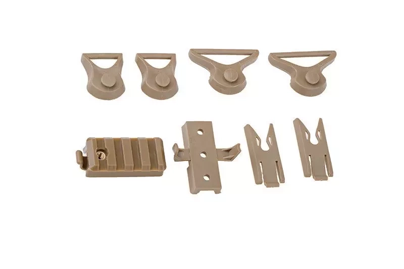 As many other helmets based on the FAST type structure, X-Shield is also equipped with a set of side mounting rails, which allows for attachment of a wide array of additional accessories such as goggles, tactical flashlights, headsets, etc. On the front of the helmet is a metal VAS type mount and drawstrings that allow NVG systems to be effectively attached to the helmet. An extensive kit of mounts and clips has been included in the set.