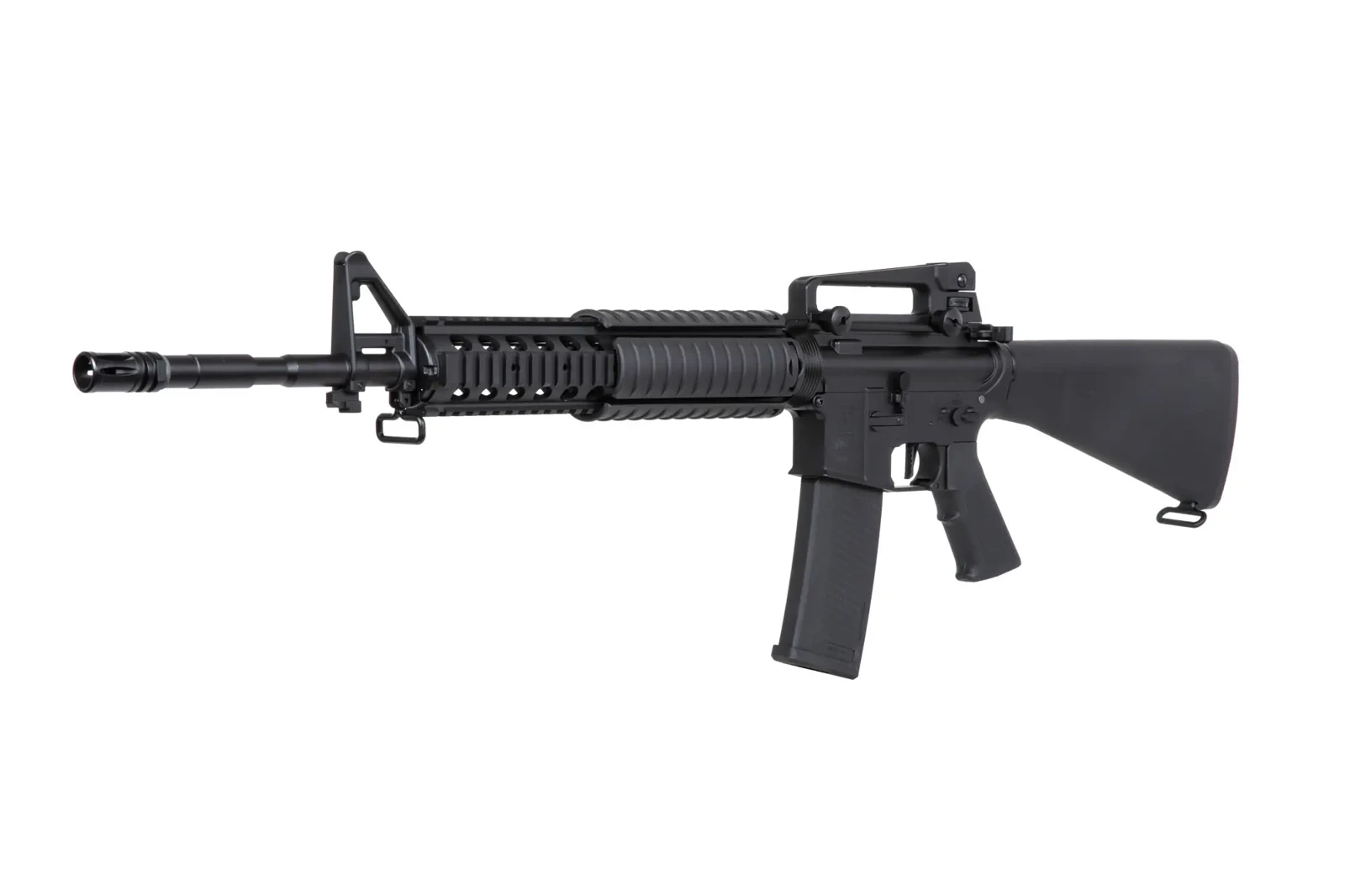 The replica is Specna Arms' variation on the US Marine classic, the M16A4. The replica features a long 20-inch external barrel, 11.5-inch RIS handguard, removable transport grip and fixed buttstock.
