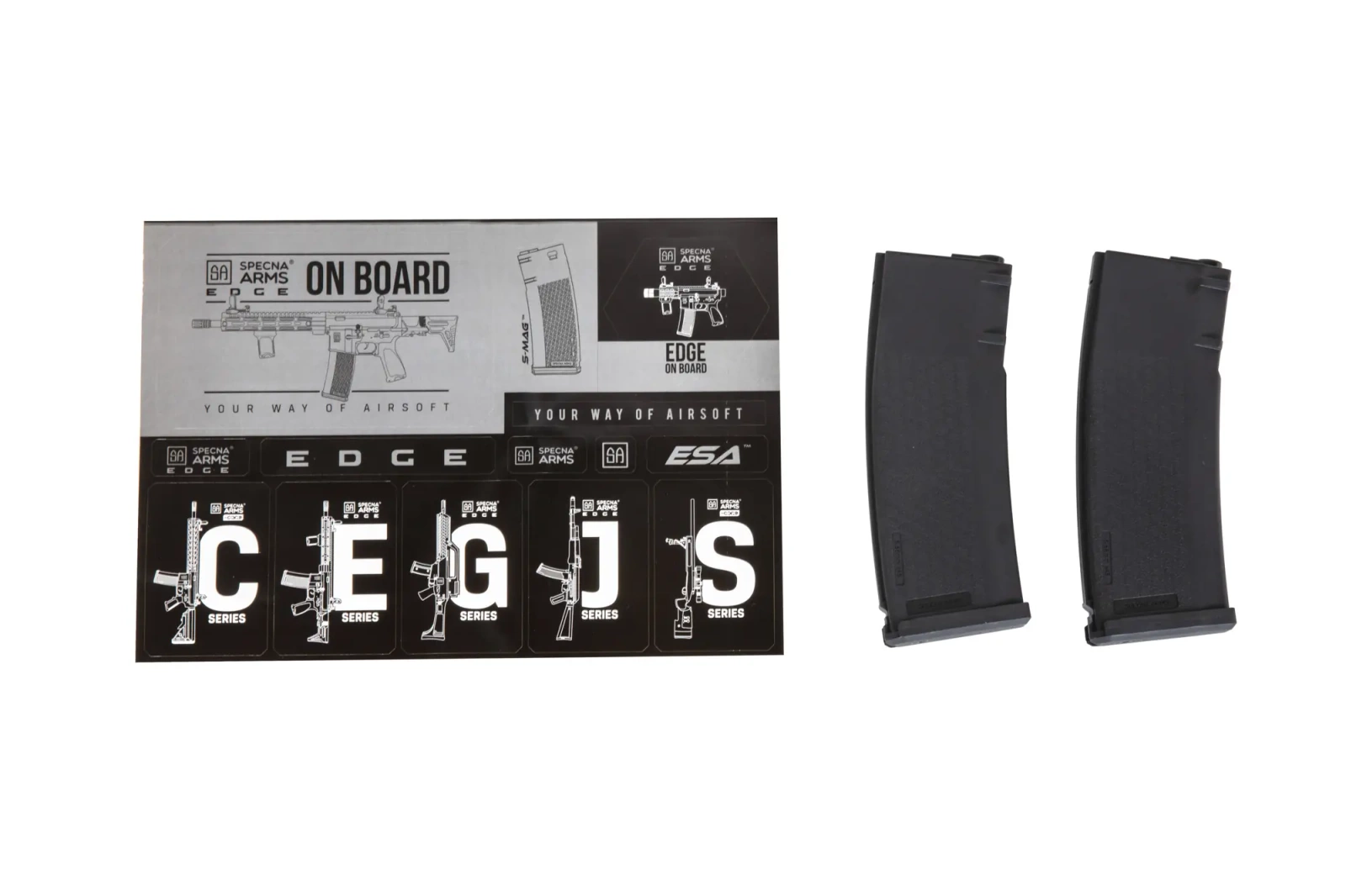 Included in the box with the replica are two S-MAG mid-cap magazines with a capacity of 125 rounds each. The S-MAG is an exclusive polymer magazine designed by Specna Arms. What draws attention is the distinctive texture composed of Specna Arms logos. The S-mag ensures trouble-free ball feeding, even at high ROF.