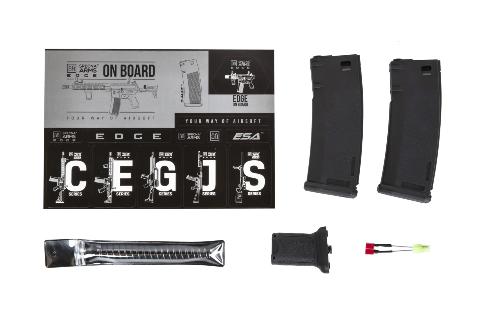 Included in the box with the replica are two S-MAG mid-cap magazines with a capacity of 125 BBs each. The S-MAG is an exclusive polymer magazine designed by Specna Arms. What draws attention is the distinctive texture composed of Specna Arms logos. The S-mag ensures trouble-free ball feeding, even at high ROF.