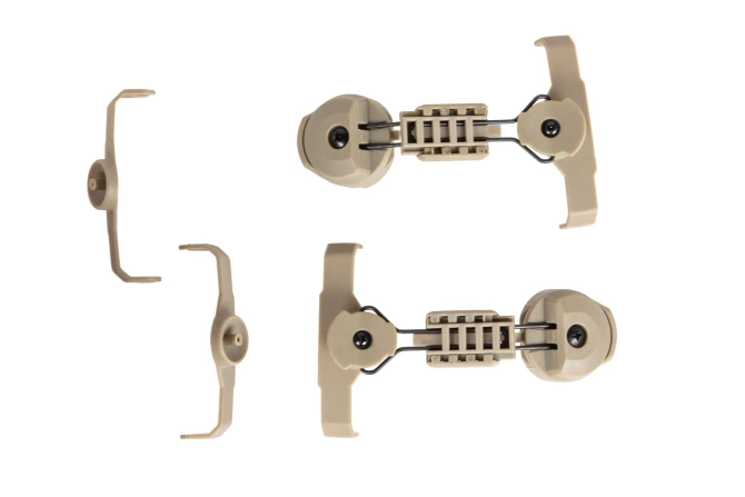 A set of adapters for MSA-type headphones, which will allow comfortable and convenient use with a helmet equipped with an ARC-type rail.