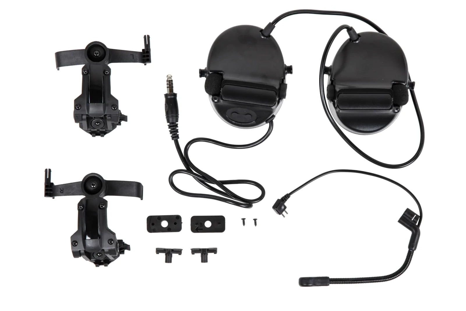 The tactical headset is designed for users who value comfort and convenience. For this reason, the headband has been dispensed with and instead the kit includes a helmet-mounted headphone adapter, which has been equipped with ARC/TW type rails.