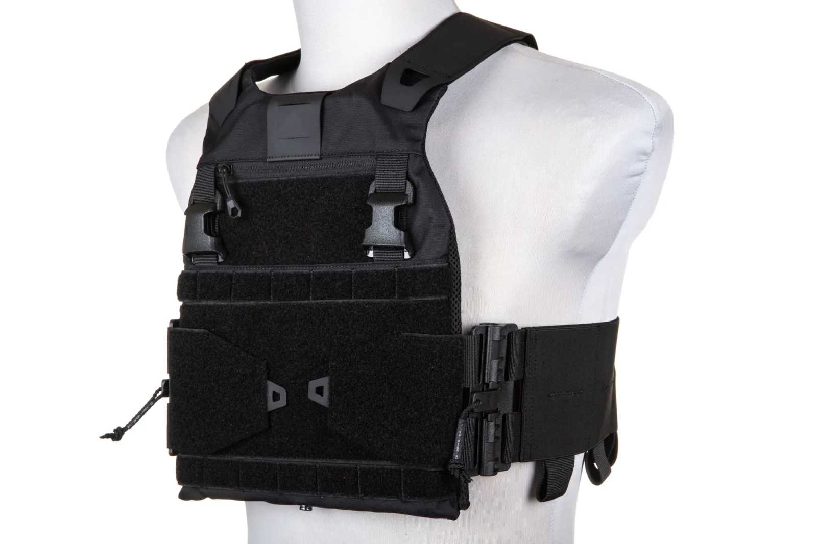 Additionally, the waistcoat is equipped with discreet and ergonomic flexible side pouches to accommodate magazines or a radio station making the waistcoat highly loadable despite the lack of standard front panel pouches.