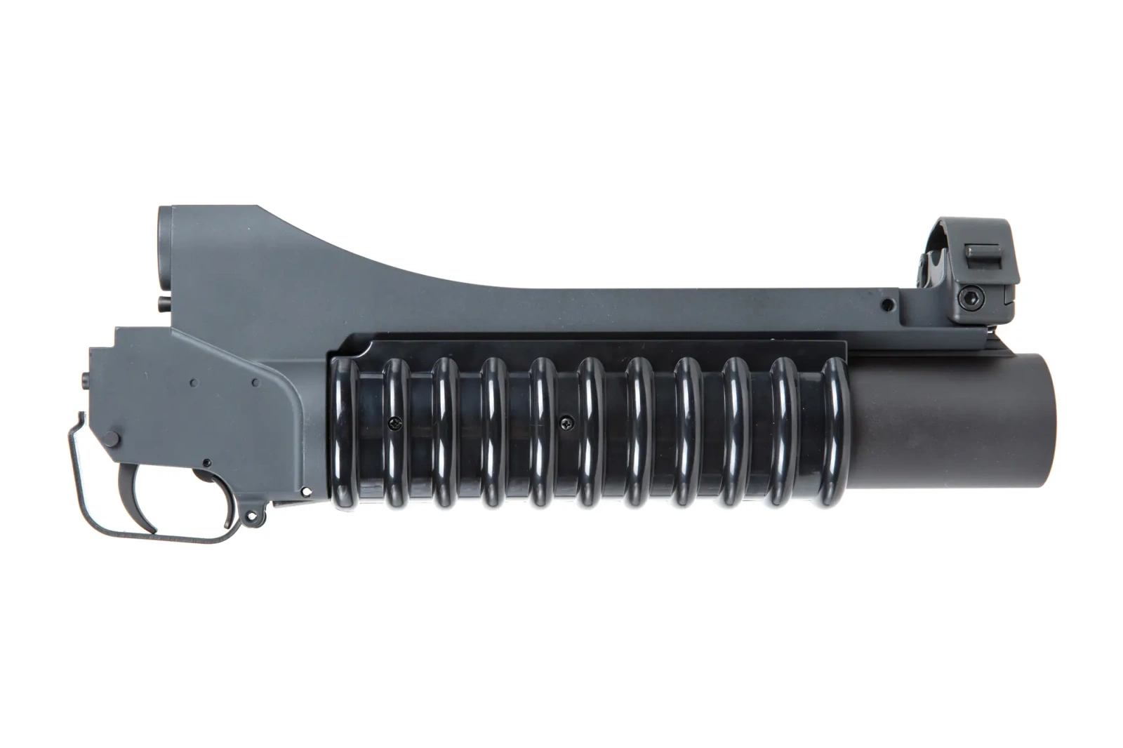 The ASG grenade launcher is made of polymer, steel, and aluminium. It can be mounted on M4/M16 type replicas. It is compatible with 40 mm ASG airsoft grenades.