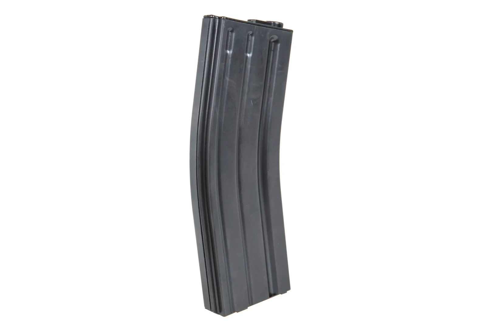 Mid-cap magazine for 125 rounds for AR15 standard replicas. The cartridge is made of durable polymer, the magazine housing is made of steel.
