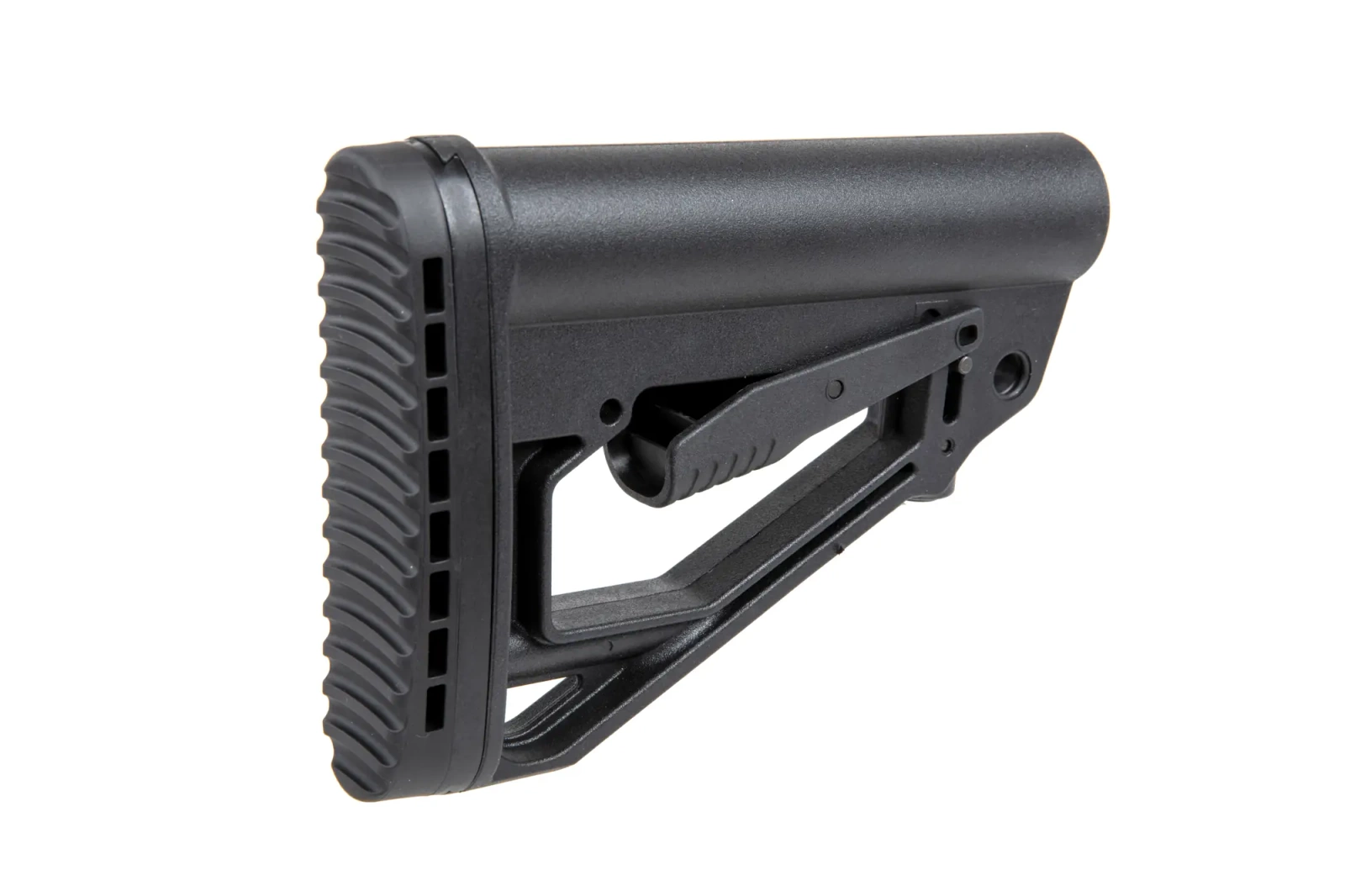 Made of high-quality polymer an extendable stock for AK-12 (2016 model), AK-RMO and AK-200 series replicas. The mounting pins and locking mechanism are made of steel. The model has a gcontoured, 6-level adjustable footplate. The stock fits an AR-15 type stock guide.