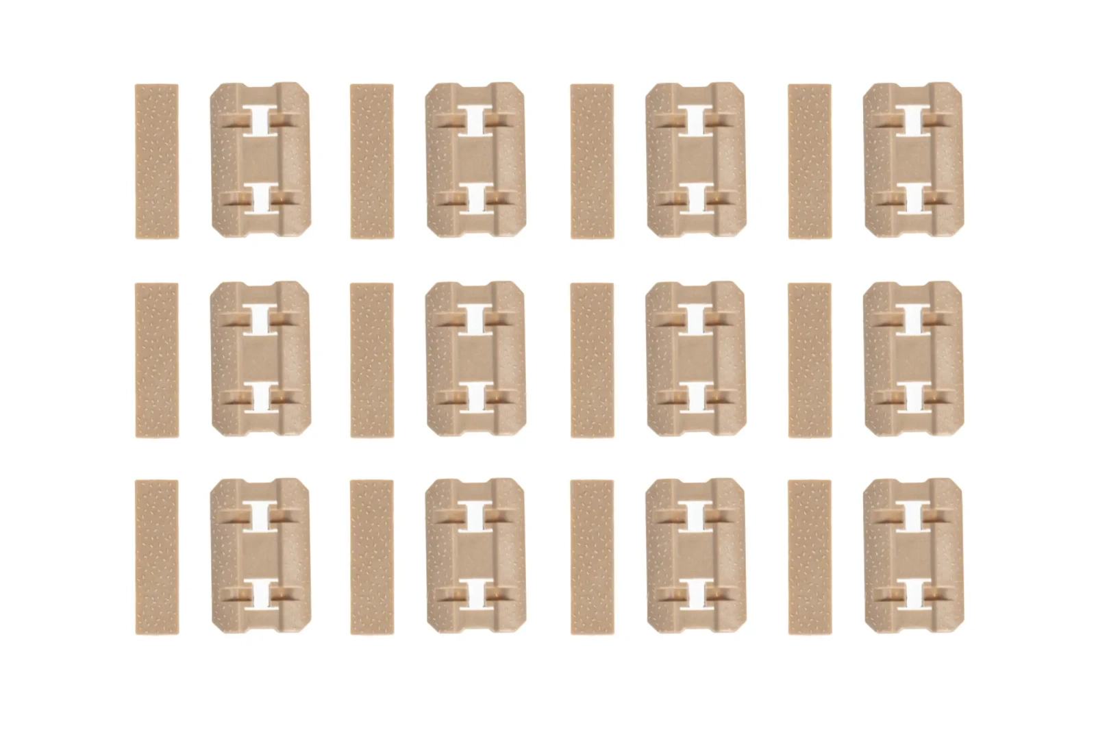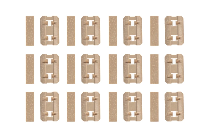 Set of 12 protective panels for MLOK rails. The panels are made of durable plastic. Each section is 4cm long.