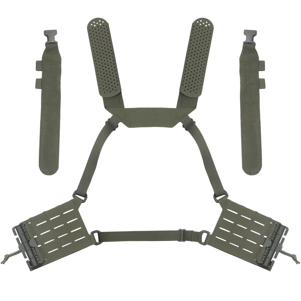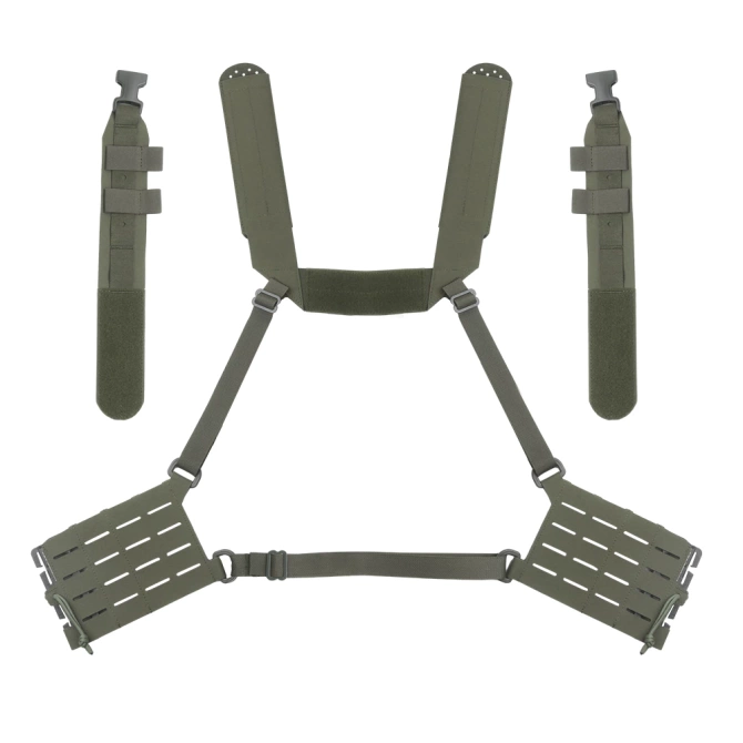 The set allows for the construction of a chest rig from a buckle up panel equipped with side QD buckles.
