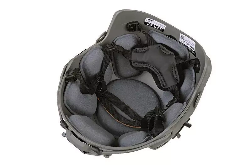 A replica made from polymer. Very comfortable in use due to its lightweight and well-considered construction. Foam pads located inside the helmet make sure it stays firmly on the user’s head. The arrangement of the pads can be changed to the user’s preferences, because they feature Velcro mounts. A 4-point webbing has a wide array of regulation and features a fastex buckle. Another merit of the webbing is the fact that it was made in an enclosed system, which means it does not have any loose, detached regulations belts.