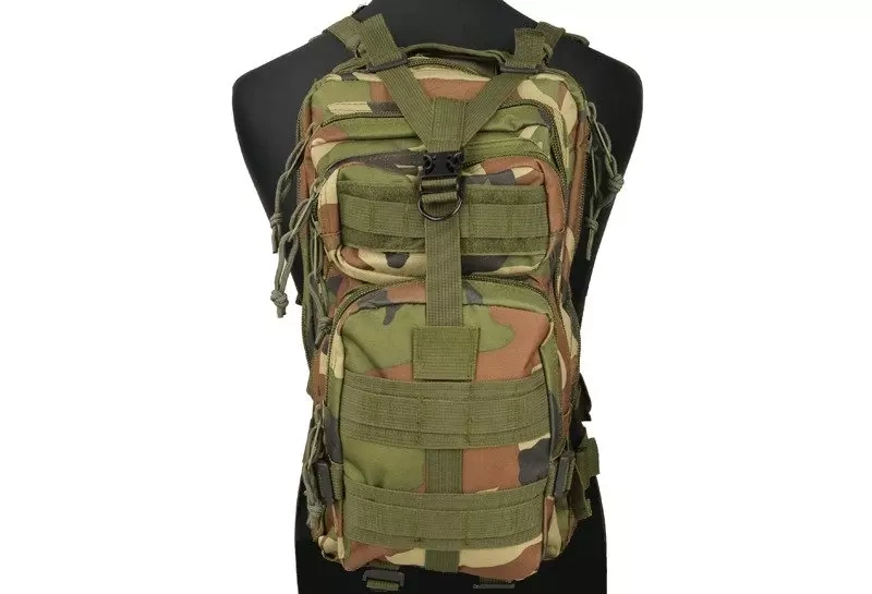 A very comfortable nylon made Assault Pack. Thanks to the good planning of the compartment and pocket placing the backpack is very capacious despite the rather small dimensions. The suspenders are adjustable in two ways: on the height of the shoulder and by the bottom of the backpack. The backpack can be taken off in a  very easy and fast way thanks to the buckles located on the end of the suspenders.