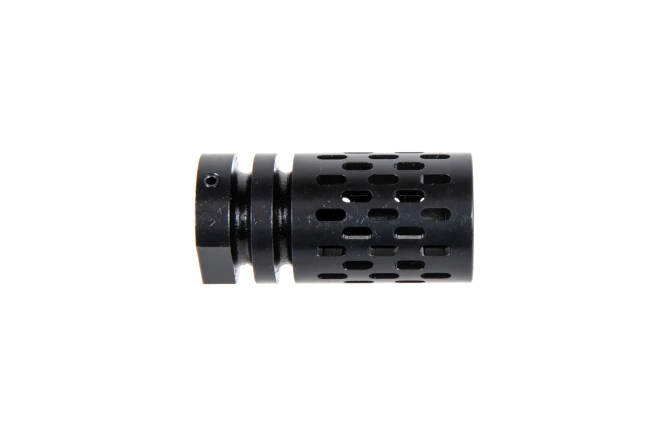 High quality replica of the exhaust device made of oxidised steel. A washer/spacer is included.
