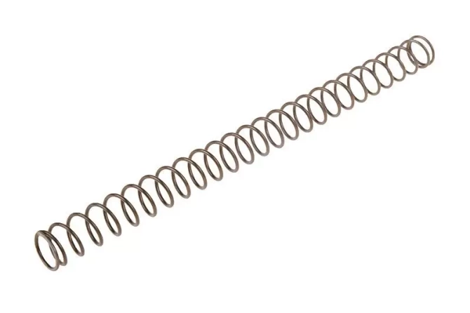 Sprężyna główna typu M110 do replik klasy PTW. Moc uzyskiwana przez montaż sprężyny jest zależna od szczelności układu, typu zastosowanego cylindra, długości lufy oraz jej średnicy.