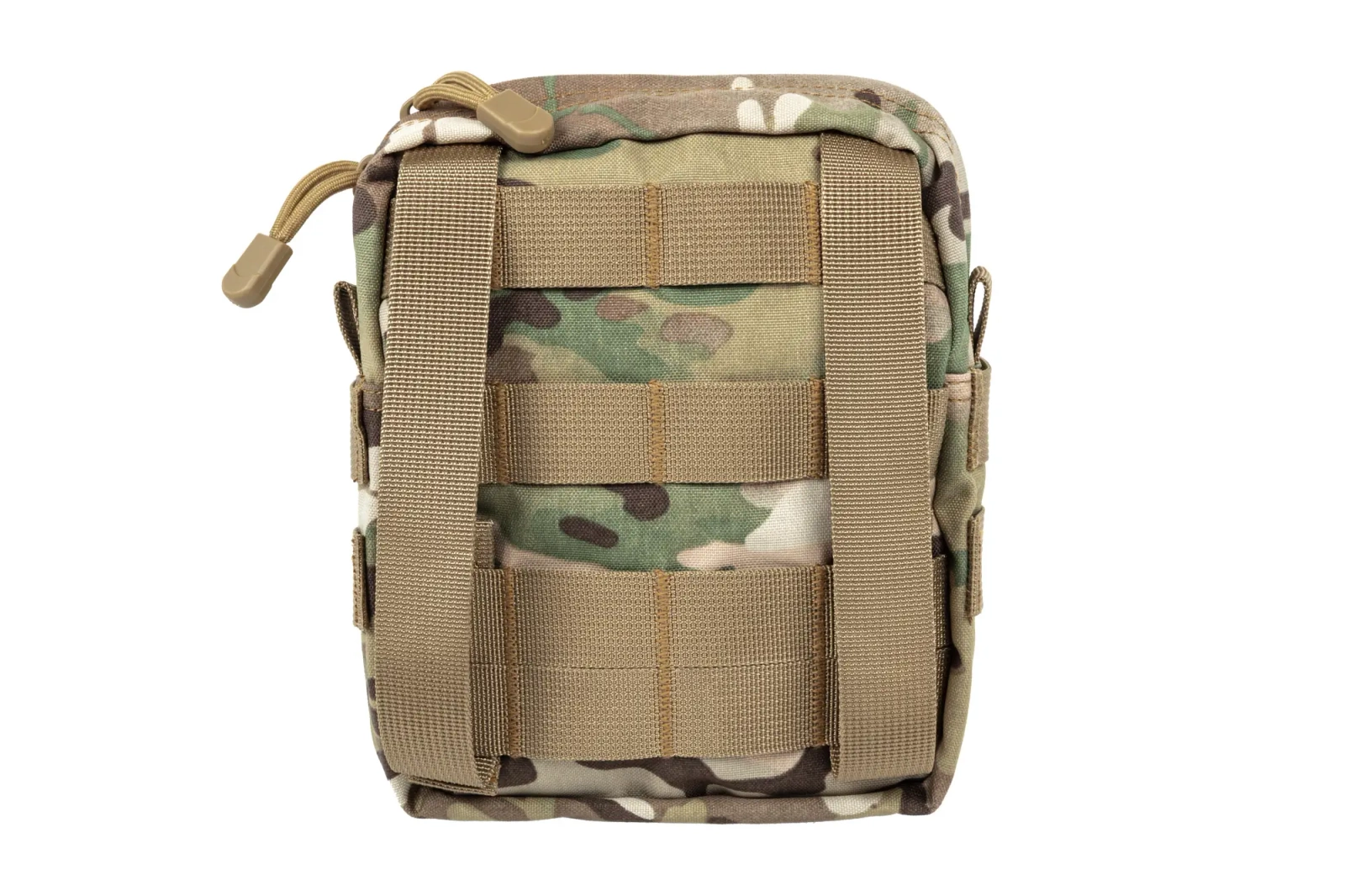 An internal rubberised layer provides water resistance and a front wall covered with MOLLE webbing allows additional equipment to be attached.
