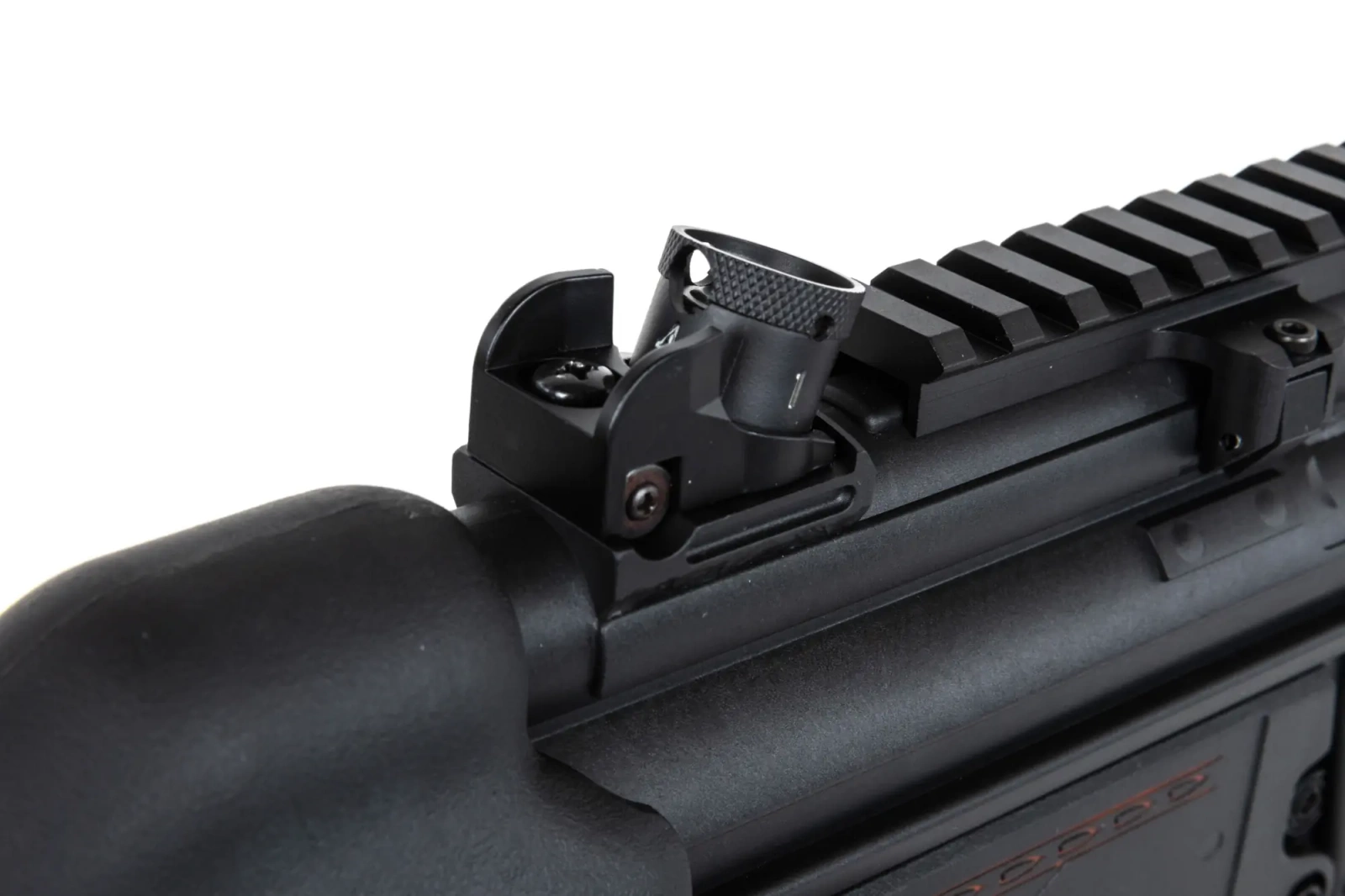 The 6853 has been predominantly made from nylon; the handguard, body, double sided fire selector, butt and pistol grip. Metal is used for the magazine, sights, RIS rail, all pins and the tactical sling mount.