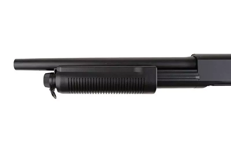Specific elements of the replica have been very well fitted together. Parts made from ZnAl include: inner barrel, grip slide, shell ejection flap, tactical sling swivels, barrel clasp, bullet chamber flap. Remaining parts such as pistol grip, body, sliding forearm handle were made from durable polymer.