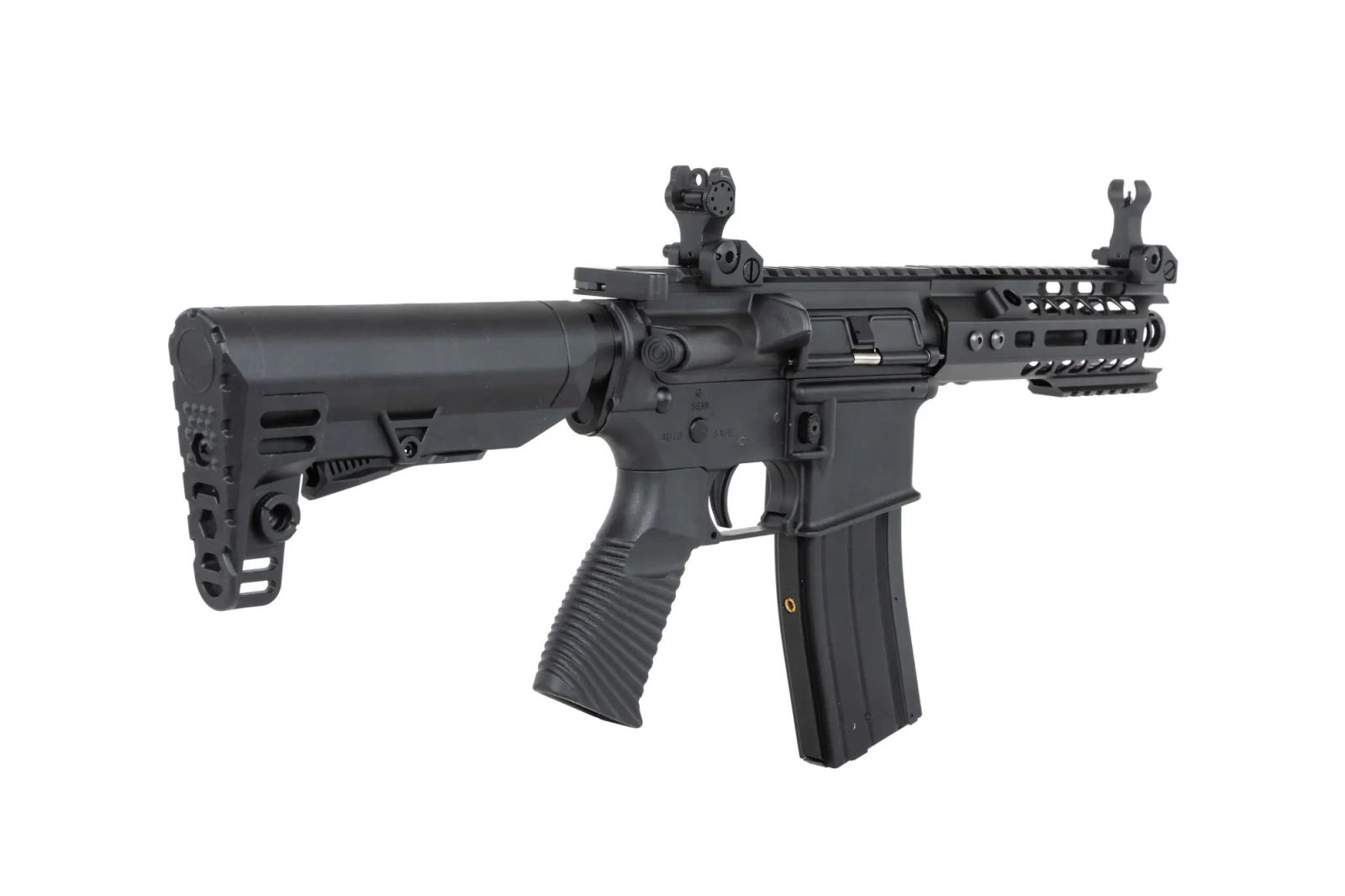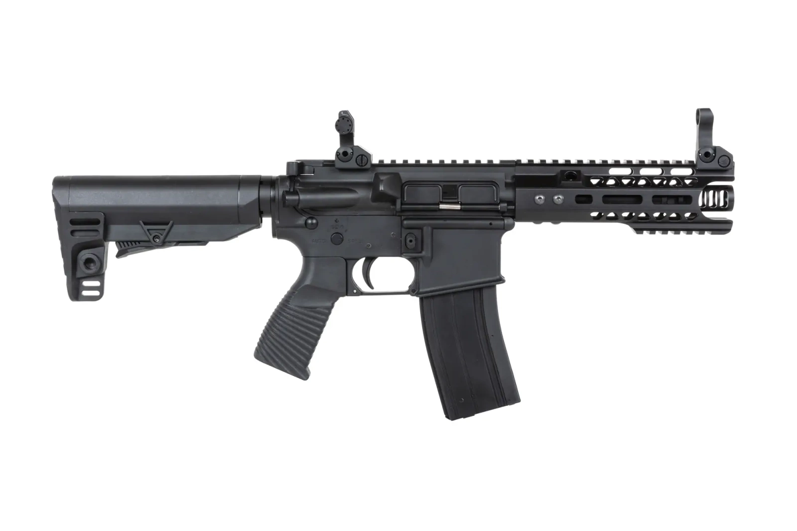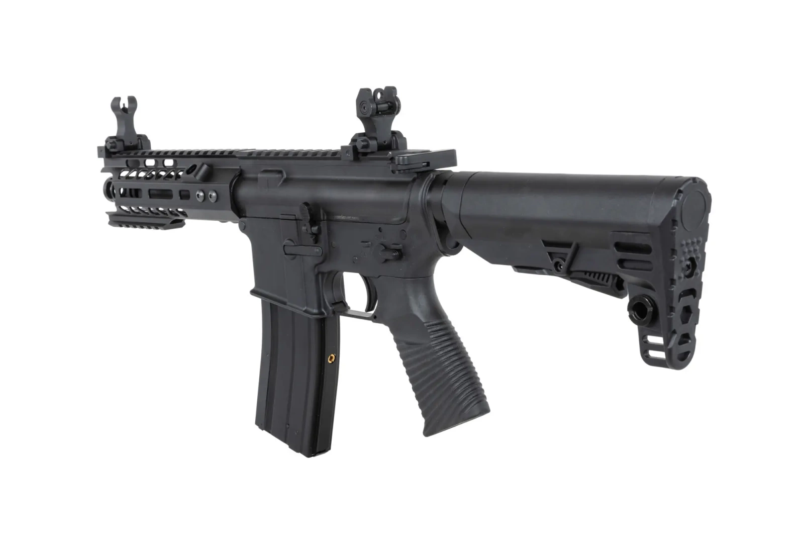 Made of metal are: 7-inch M-LOK handguard, sights, magazine, flame suppressor, pins, RIS rails on the handguard. The body with RIS rail, ergonomic pistol grip, adjustable buttstock are made of polymer,