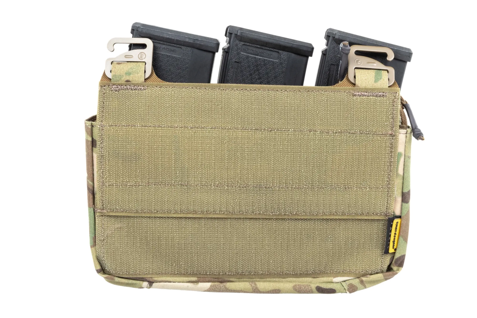 An additional zipped pocket is included along with a pouch for two pistol magazines. The user can easily attach the pocket to the Velcro on the front of the panel or use the already mentioned compartment. The back of the product has ample Velcro to allow mounting on, for example, a Plate Carrier.