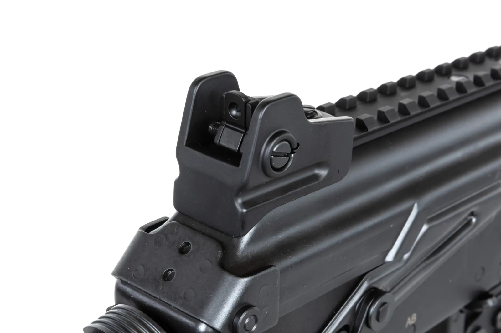 A replica of the PPK-20 submachine gun manufactured by Arcturus. The PPK20M1 AEG has been made mainly from steel and a few parts from aluminium and durable polymer. It features a gas tube, barrel holder, cap, dummy breech, selector lever, butt lock mechanism, trigger guard, butt lock, magazine lock and dummy breech chamber. Aluminium is used for the barrel, dorsal RIS rail, fire selectors and flame silencer. Polymer is used for the magazine, buttstock with rubber feet, pistol grip with integrated bail and handguard with gas tube cover.