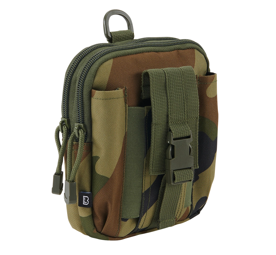 The compartments are closed with a zip. The front of the pouch has small pockets for a torch or pen, for example, and a zipped compartment for a mobile phone, for example. The pouch can easily be attached to a belt or tactical vest thanks to its compatibility with the Molle system.