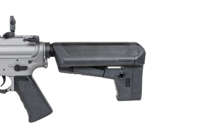 The carbine was mainly made of durable aluminium using CNC equipment (M-LOK REC7 handguard 15 inches long with Barrett markings, body, dorsal RIS rail). Durable polymer was used for the ergonomic pistol grip, which has a rough surface, the flap of the shell ejector, the bail, the trigger and the adjustable stock with QD mounting - the stock includes a connector for connecting the battery. The tactical sling mounting plate, flame suppressor and all pins and screws are made of steel .
